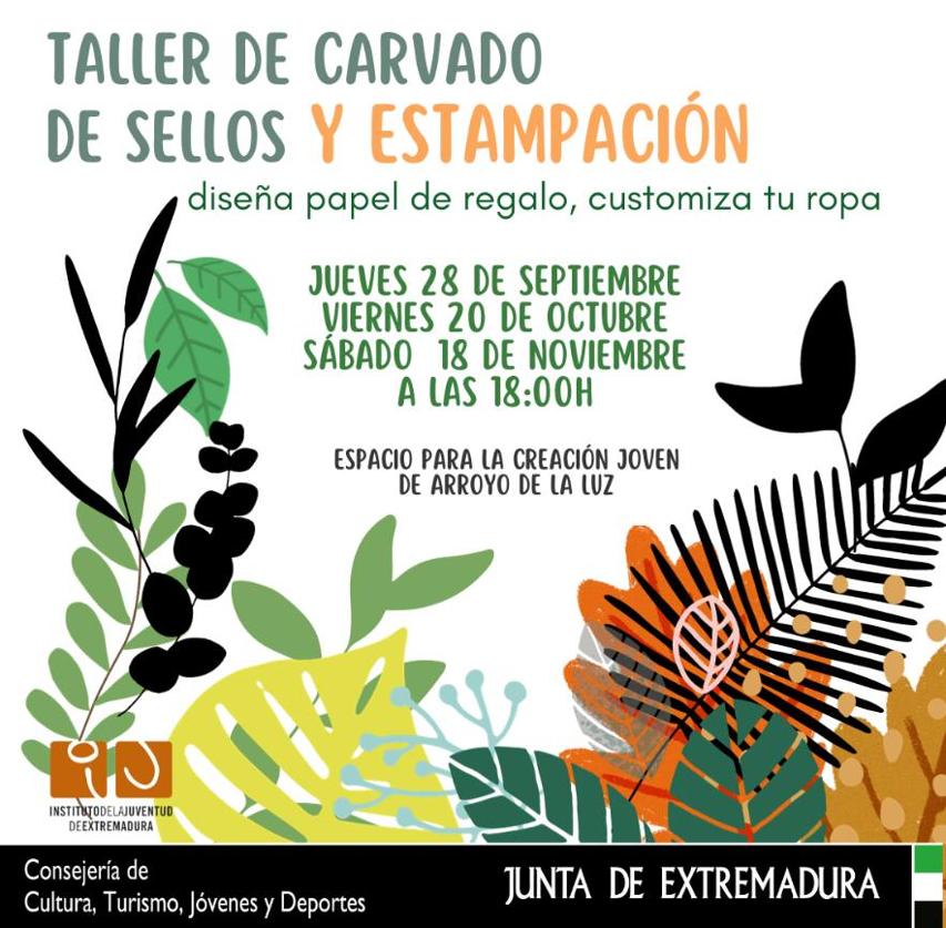 El Espacio para la Creación Joven de Arroyo de la Luz va a organizar una nueva sesión del taller de carvado de sellos y estampación hoy sábado, 18 de noviembre. Durante el mismo, los asistentes podrán diseñar su propio papel de regalo o customizar su ropa.