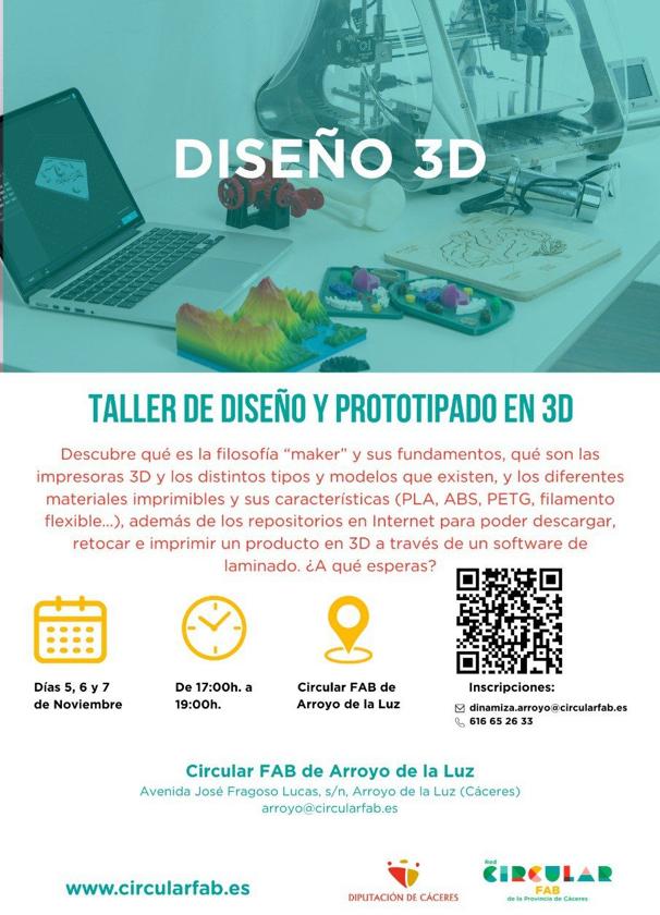 Dentro de las diferentes formaciones, el centro arroyano va a poner en marcha un nuevo taller de Diseño y Prototipado en 3D diseñado especialmente para principiantes donde los asistentes podrán sumergirse en una sesión interactiva llena de demostración y experimentación.