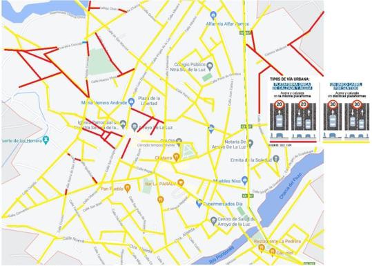 En el mapa que acompaña a esta noticia se han marcado en color rojo las calles en que el límite de velocidad es de 20 km/h, mientras que en las que están marcadas en amarillo el límite es de 30 km/h.
