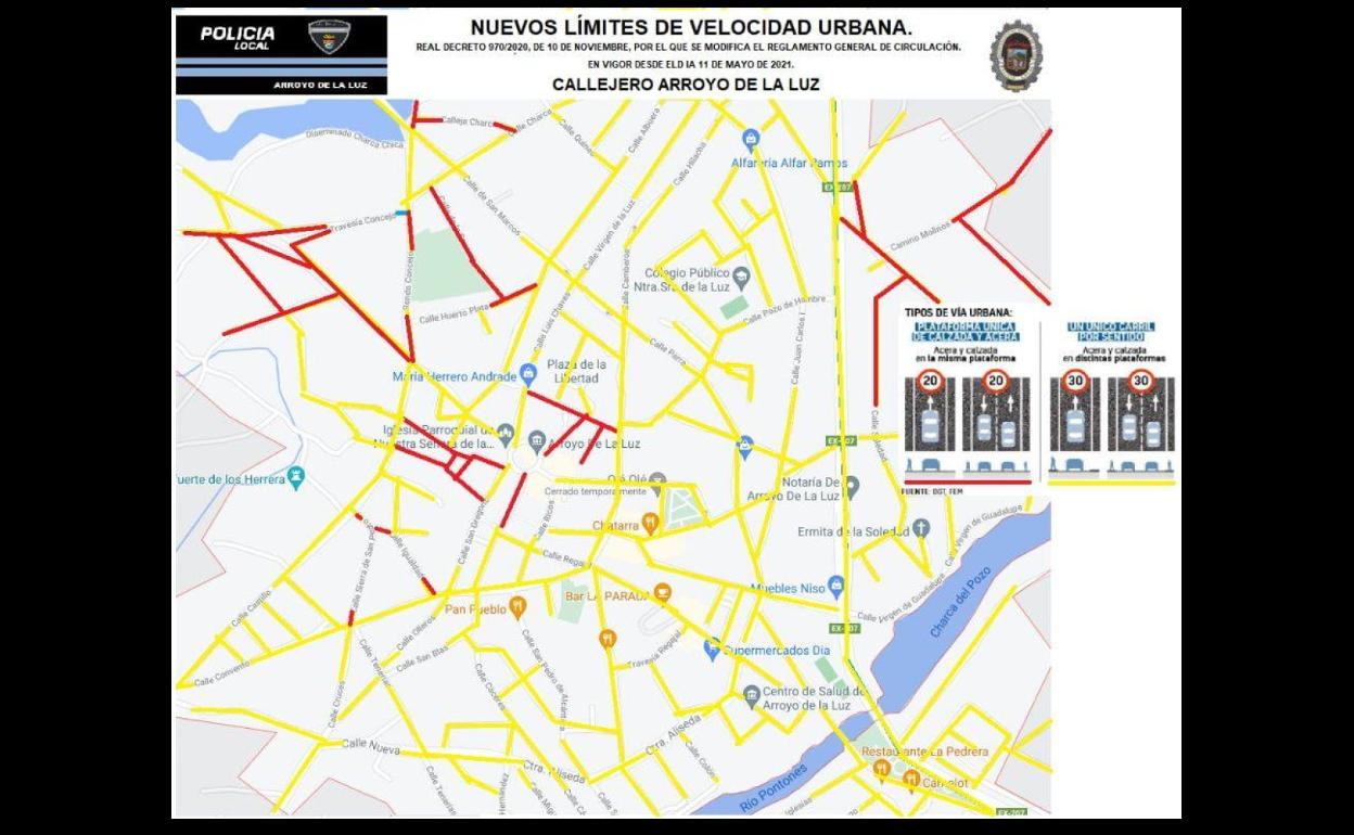 El Ayuntamiento de Arroyo de la Luz, junto a la Jefatura de Policía Local, informan sobre los nuevos límites de velocidad que entraron en vigor ... el pasado martes 11 de mayo, por los que se ha reducido la velocidad permitida en la mayoría de las calles de la localidad.