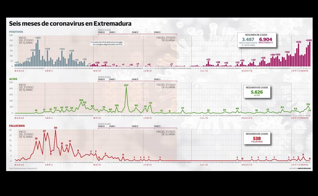 5 de septiembre. Extremadura registra 223 nuevos casos, el tercer día con más positivos de toda la pandemia.