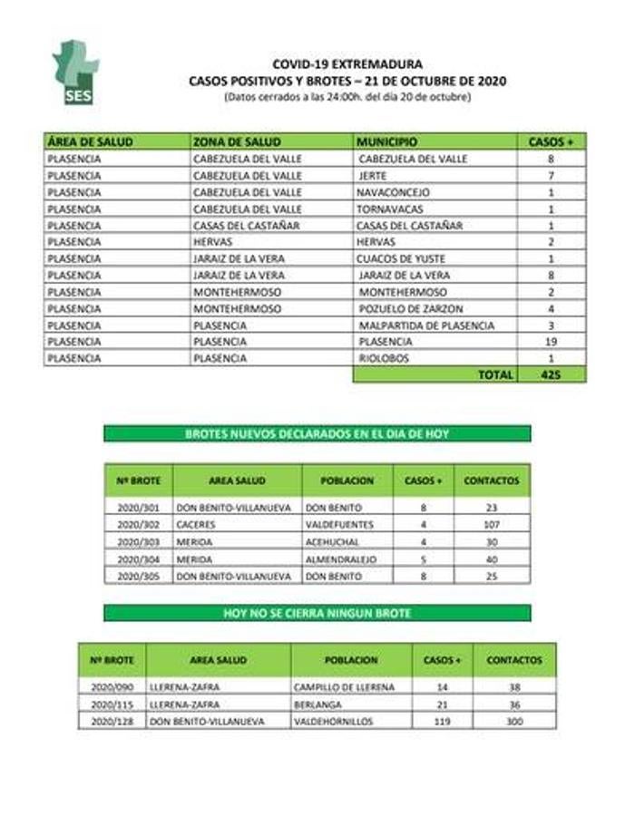 ¿Qué poblaciones extremeñas tienen nuevos casos covid este miércoles?