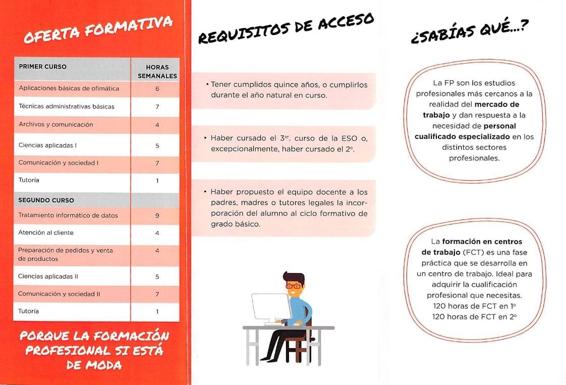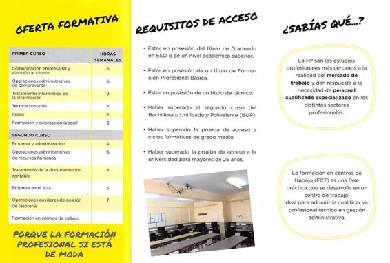 Los cursos ofertados son el ciclo de Grado Básico de Servicios Administrativos, el ciclo de Grado Medio de Gestión Administrativa y el ciclo de Grado Superior de Administración y Finanzas.