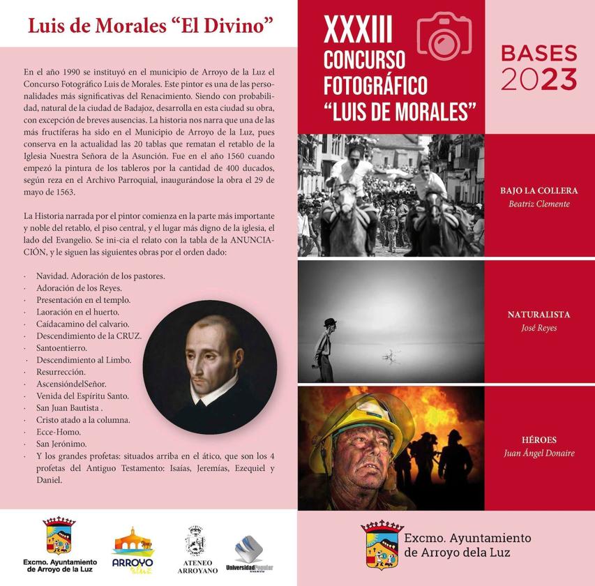 El Concurso Fotográfico Luis de Morales se instituyó en Arroyo de la Luz en 1990. Este pintor es una de las personalidades más significativas del Renacimiento, siendo con probabilidad, natural de la ciudad de Badajoz, ciudad donde desarrolla su obra, con excepción de breves ausencias. La historia narra que una de las más fructíferas fue en Arroyo de la Luz, donde se conservan las 20 tablas que rematan el retablo de la Iglesia Parroquial Nuestra Señora de la Asunción. En 1560 comenzó la pintura de los tableros por la cantidad de 400 ducados, según reza el Archivo Parroquial, inaugurándose la obra el 29 de mayo de 1563.