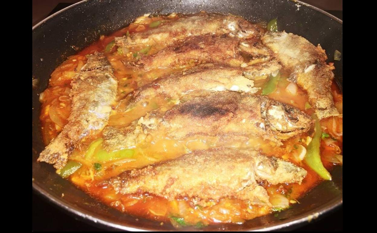 En primer lugar se sazona y pasan ligeramente por harina las tencas. Se pone a calentar en la sartén aceite de oliva y se añaden las tencas. Cuando estén bien fritas, se reservan.