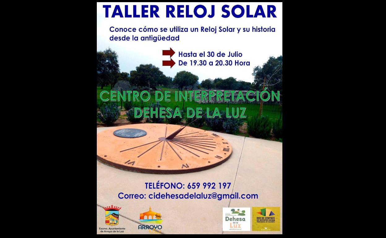 El Centro de Interpretación Dehesa de la Luz, de Arroyo de la Luz, está llevando a cabo un Taller de Reloj Solar durante todas las tardes, que finalizará el próximo sábado, día 30 de julio. En dicho taller se enseña la forma de utilizar un reloj solar, así como su historia desde la antigüedad.