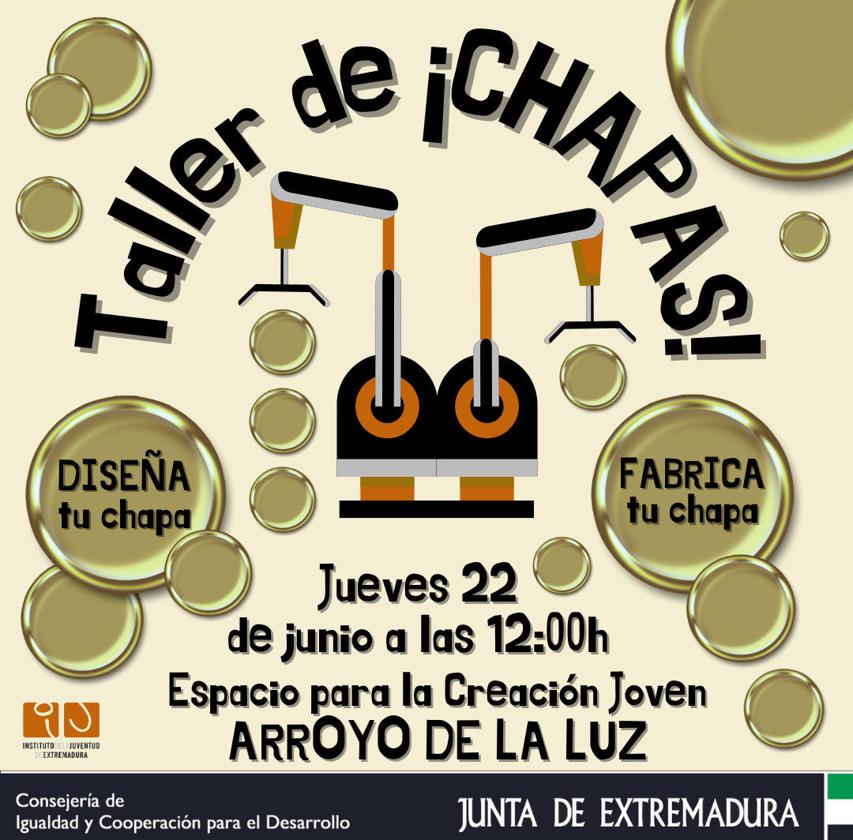 El próximo jueves, día 22 de junio, el Espacio para la Creación Joven de Arroyo de la Luz acogerá un Taller de Chapas.