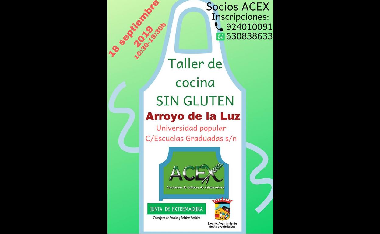 Mañana miércoles, 18 de septiembre, la Asociación de Celiacos de Extremadura, con la colaboración del Ayuntamiento de Arroyo de la Luz y la Consejería de ... Sanidad y Políticas Sociales de la Junta de Extremadura, organizarán un Taller de Cocina Sin Gluten en Arroyo de la Luz para socios de ACEX.