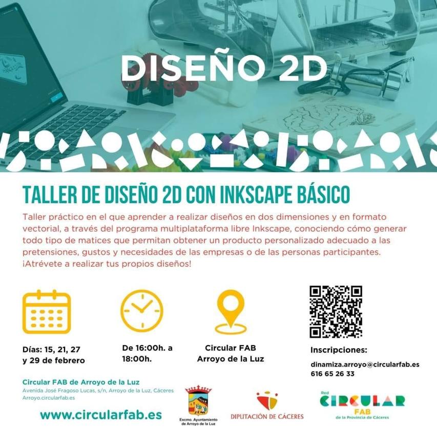 El Circular Fab de Arroyo de la Luz, dentro de su oferta formativa, va a llevar a cabo un Taller de diseño 2D con Inkscape ... Básico.