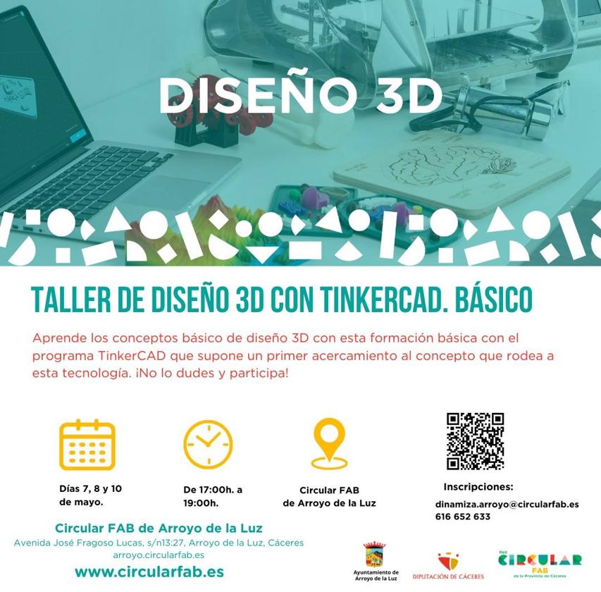 El Circular Fab de Arroyo de la Luz, dentro de su oferta formativa, va a llevar a cabo un Taller de Diseño 3D con TinkerCAD ... Básico.