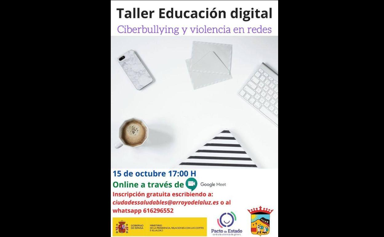 El Ayuntamiento de Arroyo de la Luz ha organizado, para el próximo 15 de octubre a las 17.00 horas, el taller de educación digital ' ... Ciberbullying y violencia en redes sociales', que se impartirá de forma online a través de Google Meet.