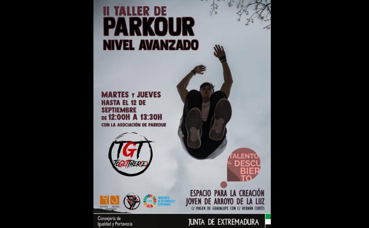 El Espacio para la Creación Joven de Arroyo de la Luz continúa acogiendo los talleres que integran el programa de Talento al Descubierto. De esta ... forma, los martes y jueves, hasta el próximo 12 de septiembre, la asociación de parkour TGT Together(e) enseña los secretos del parkour de 12.00 a 13.30 horas. El taller se lleva a cabo en las instalaciones del ECJ de la localidad.