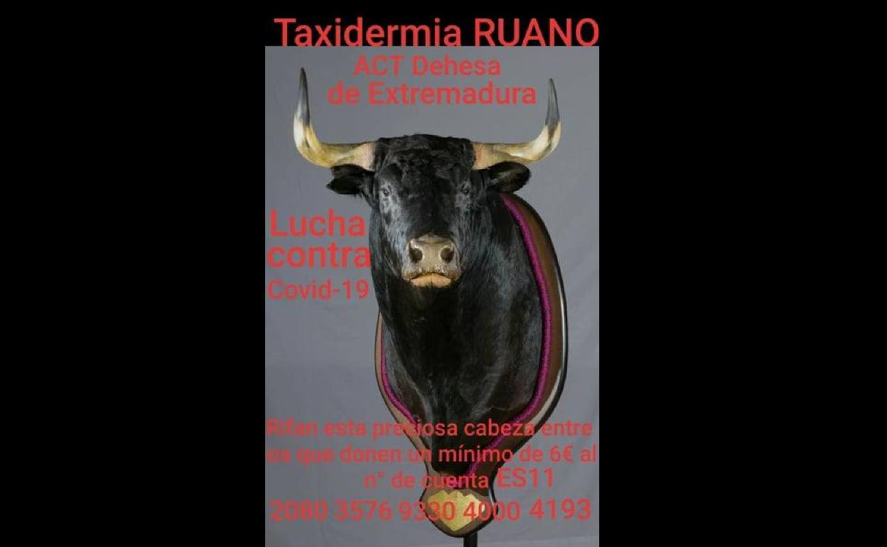 Una de las últimas de estas iniciativas personales que se han organizado en Arroyo de la Luz parte de la empresa de Taxidermia Ruano, desde donde se ha donado una cabeza de toro a la Asociación Cultural Taurina Dehesa de Extremadura para que lleven a cabo una rifa.