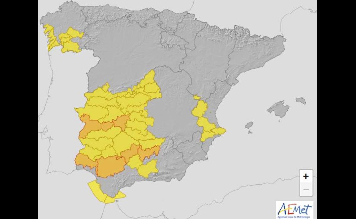 Las temperaturas estarán sin cambios, pudiendo subir las máximas en la mitad norte en forma ligera. Así, en la provincia de Badajoz los termómetros oscilarán entre los 22 grados de mínima y los 42 de máxima, mientras que en la de Cáceres oscilarán entre los 23 y los 39 grados.