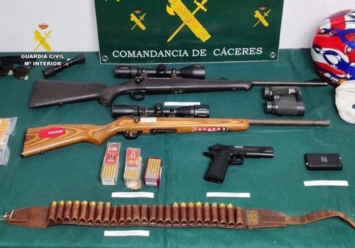 Obtenidos indicios suficientes, el pasado 2 de marzo se procedió a su detención como supuestos autores de los delitos investigados, recuperándose parte de los efectos sustraídos, entre ellos dos rifles de caza que habían sido robados de un vehículo en la localidad de Alcántara (Cáceres), e interviniéndose una defensa eléctrica y una pistola simulada que, supuestamente, eran utilizadas para perpetrar los hechos delictivos.