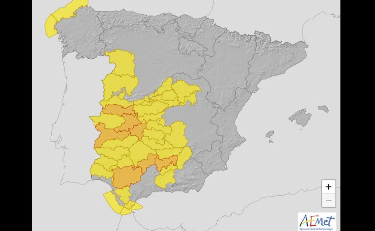 En concreto, según las previsiones de la Agencia Estatal de Meteorología podrán alcanzarse los 42 grados de máxima en las Vegas del Guadiana; los 40 grados en la comarca de La Siberia, en la provincia de Badajoz, y en las zonas del Tajo y el Alagón, en la provincia de Cáceres.