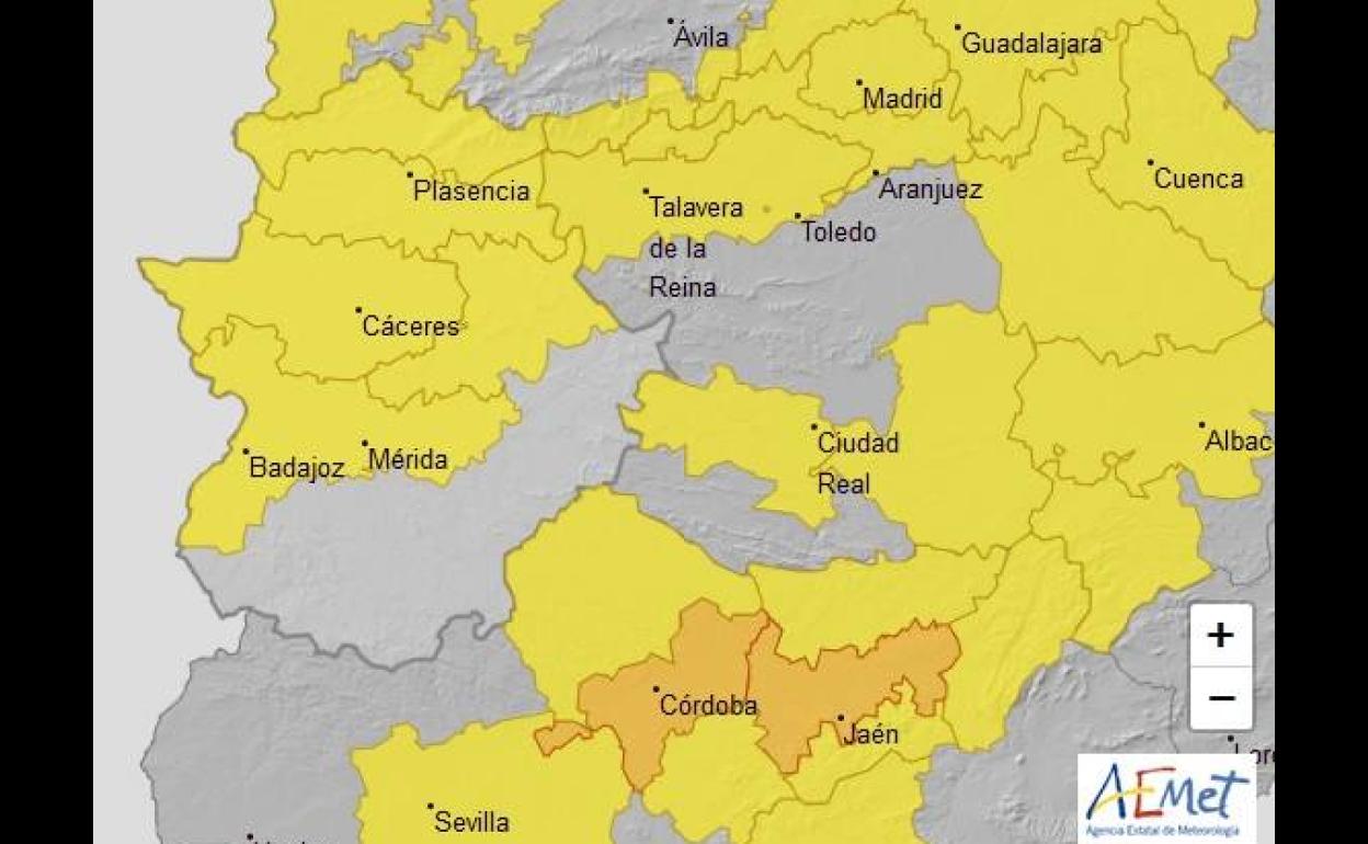 En cuanto a las altas temperaturas, se esperan máximas de 39 grados en las vegas de los ríos Guadiana, Tajo y Alagón, y de 37 grados en el norte de Cáceres, Las Villuercas y Montánchez.