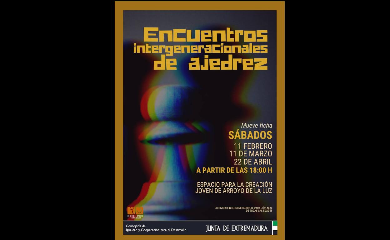Para mañana sábado, día 11 de febrero, el Espacio para la Creación Joven de Arroyo de la Luz tiene organizado un nuevo Encuentro Intergeneracional de ... Ajedrez.